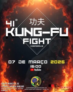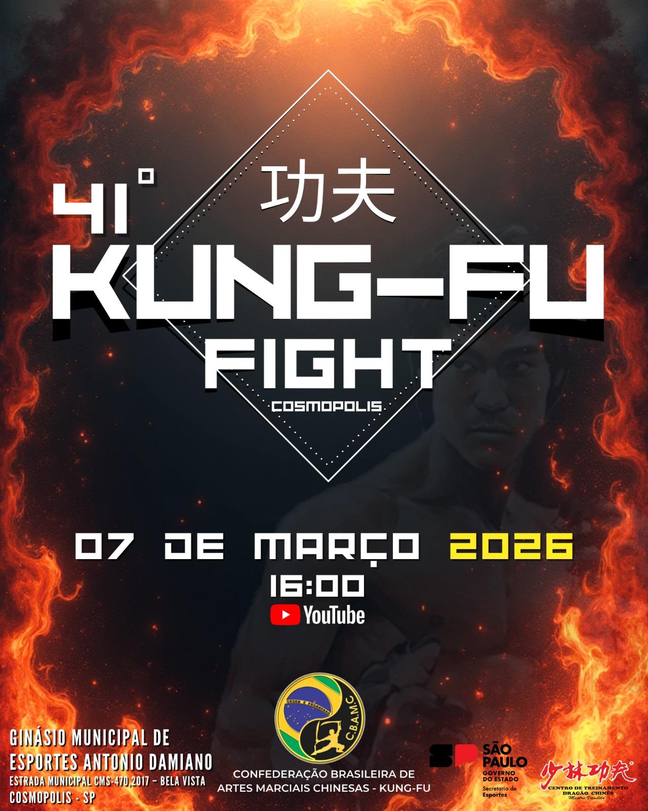 O 41º Kung-Fu Fight será realizado no próximo sábado, dia 7 de março, às 16h, em Cosmópolis (SP), e marca mais uma edição do principal evento profissional de Kung-Fu do país. Consolidado no calendário nacional, o torneio reúne atletas do Brasil e do exterior e transmissão ao vivo para o público internacional.