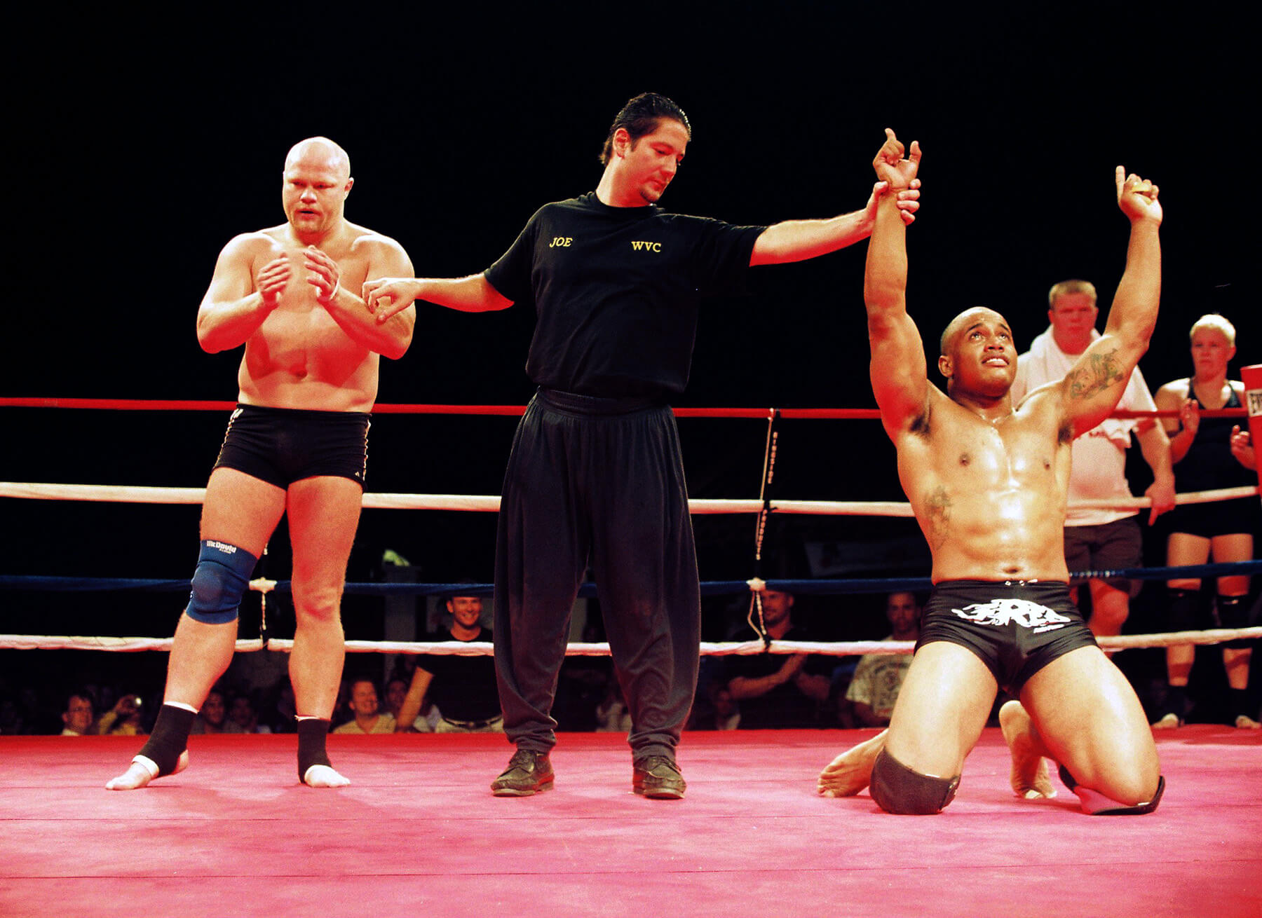 Empolgado com a vitória de Yvel, seu empresário o holandês que era o dono do evento, Ari Ron, me fez um desafio ao bicampeão do Japan Open logo após a luta “Pago 500 mil para o Rickson enfrentá-lo”. E por falar em Rickson, que em 1999 ainda era considerado uma espécie de Deus no Japão, seu sparing o grego Stephano Miltsakabis (1,87m/101kg), também lutou neste evento fazendo uma super luta com Joe Charles (1,84m/125kg). “Quando você treina com o melhor do mundo não há o que temer”, me disse o grego poucas horas antes de subir no ringue para estrear contra o rodadíssimo americano que já tinha 15 lutas de Vale-Tudo no curriculum, contra nomes como Dan Severn, Murilo Bustamante, Oleg Taktarov e Pete Williams.