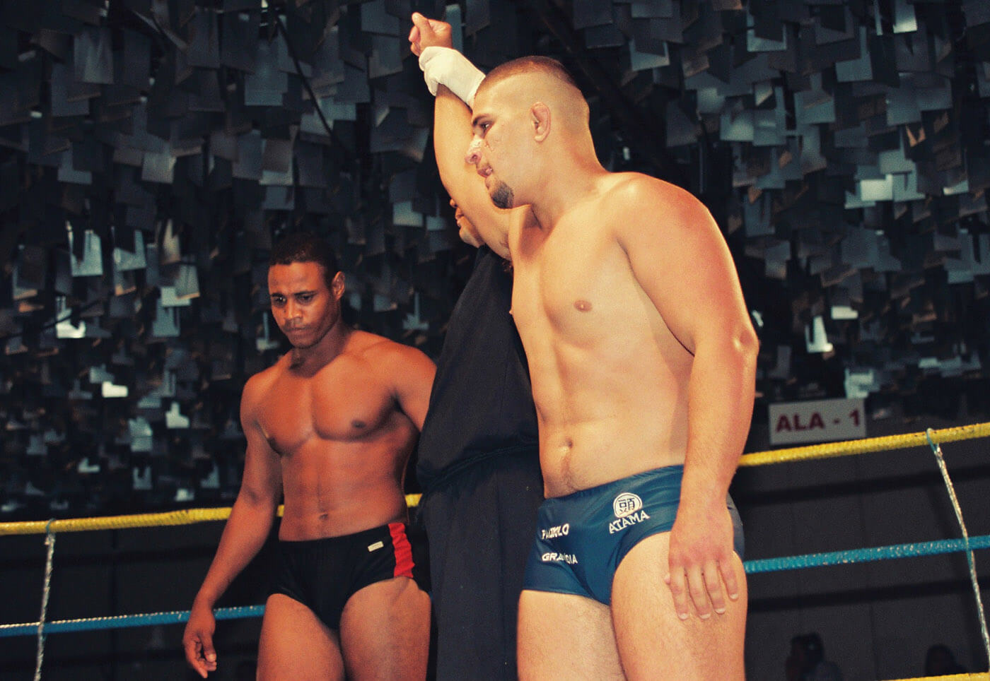 Ismael passou mais de 15 minutos por baixo se defendendo das investidas do representante da Budokan e quando a luta voltou em pé, segurou nas cordas em três oportunidades para não cair e acabou desclassificado aos 18min12s.