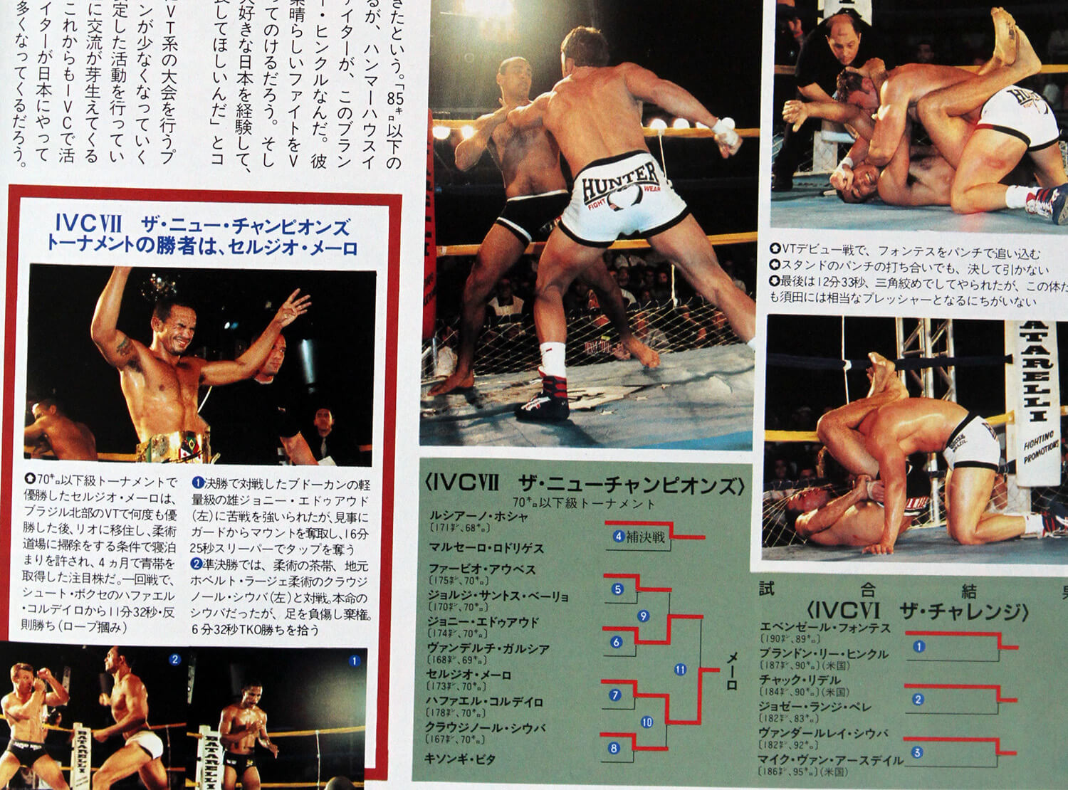 Curiosamente Sergio Melo entrou neste IVC como zebra. Depois de vencer vários eventos de Vale-Tudo no nordeste, Sergio resolveu se mudar para o Rio de Janeiro para literalmente viver no tatame. Com a ajuda do faixa preta Mauricio Strauch e o patrocínio da Senki Kimonos, o nordestino passou a morar na academia Strauch treinando Jiu-Jitsu o dia inteiro e boxe a noite com Claudio Coelho.
