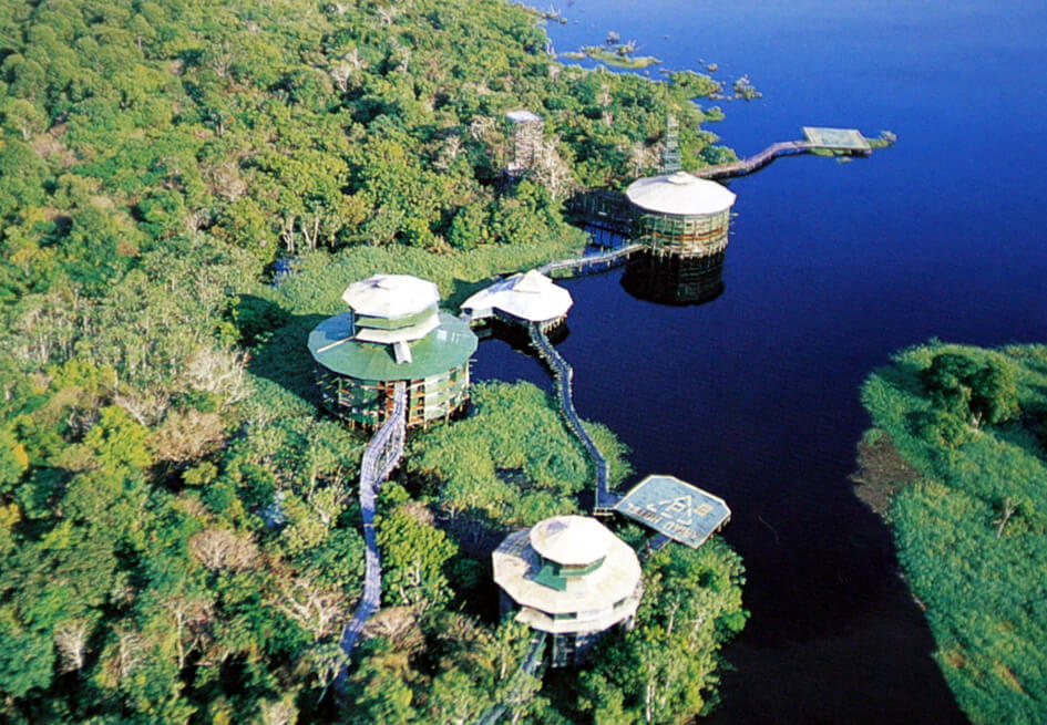 Localizado a quase 60km de Manaus o Ariau Towers era um hotel de selva todo construído em cima de mega palafitas de madeira entremeadas por quilômetros de passarelas. Para se chegar lá, era necessário navegar quase duas horas de barco de Manaus pelo Rio Negro.