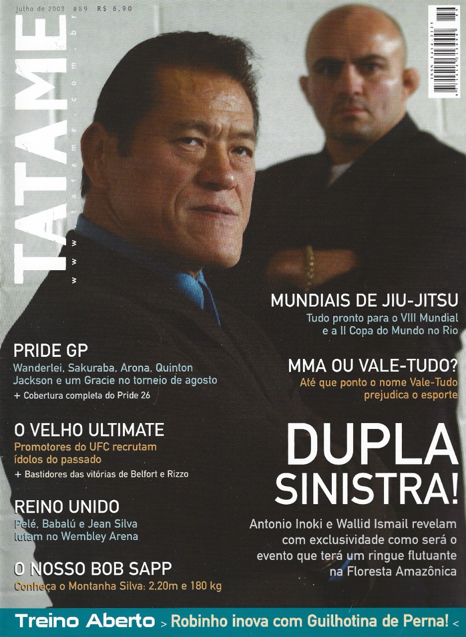 A entrevista de Inoki e Wallid acabou virando matéria de capa da revista Tatame de junho de 2003 com o sugestivo título: Dupla sinistra. Lembro que na época a Tatame foi muito criticada por dar a capa para uma loucura daquelas, que parecia não ter a menor chance de sair do papel.