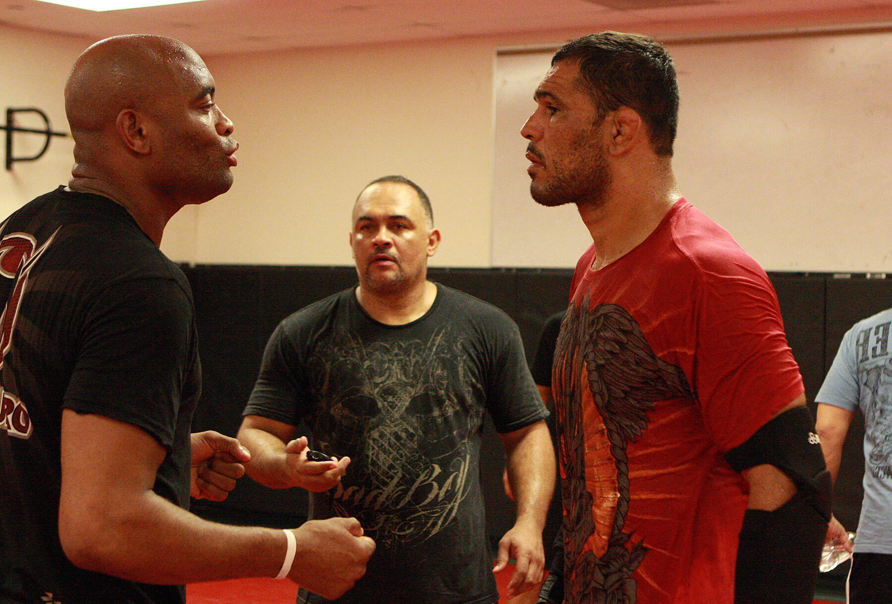 O ANDERSON TE AJUDOU MUITO NOS TREINOS PARA ESSA LUTA. COMO FOI O APOIO DELE NOS TREINOS? Ele é uma peça fundamental. A gente estava treinando em San Diego, na academia do Brandon Vera e numa outra academia, estávamos com um camp bom, aí o Anderson passou lá com cinco carros… Ele, o Feijão, todo mundo. Eles me mandaram colocar tudo no carro e ir para Los Angeles. O último mês foi perfeito, me deram uma estrutura boa de treino. Treinei com ele todo dia e foi excelente.