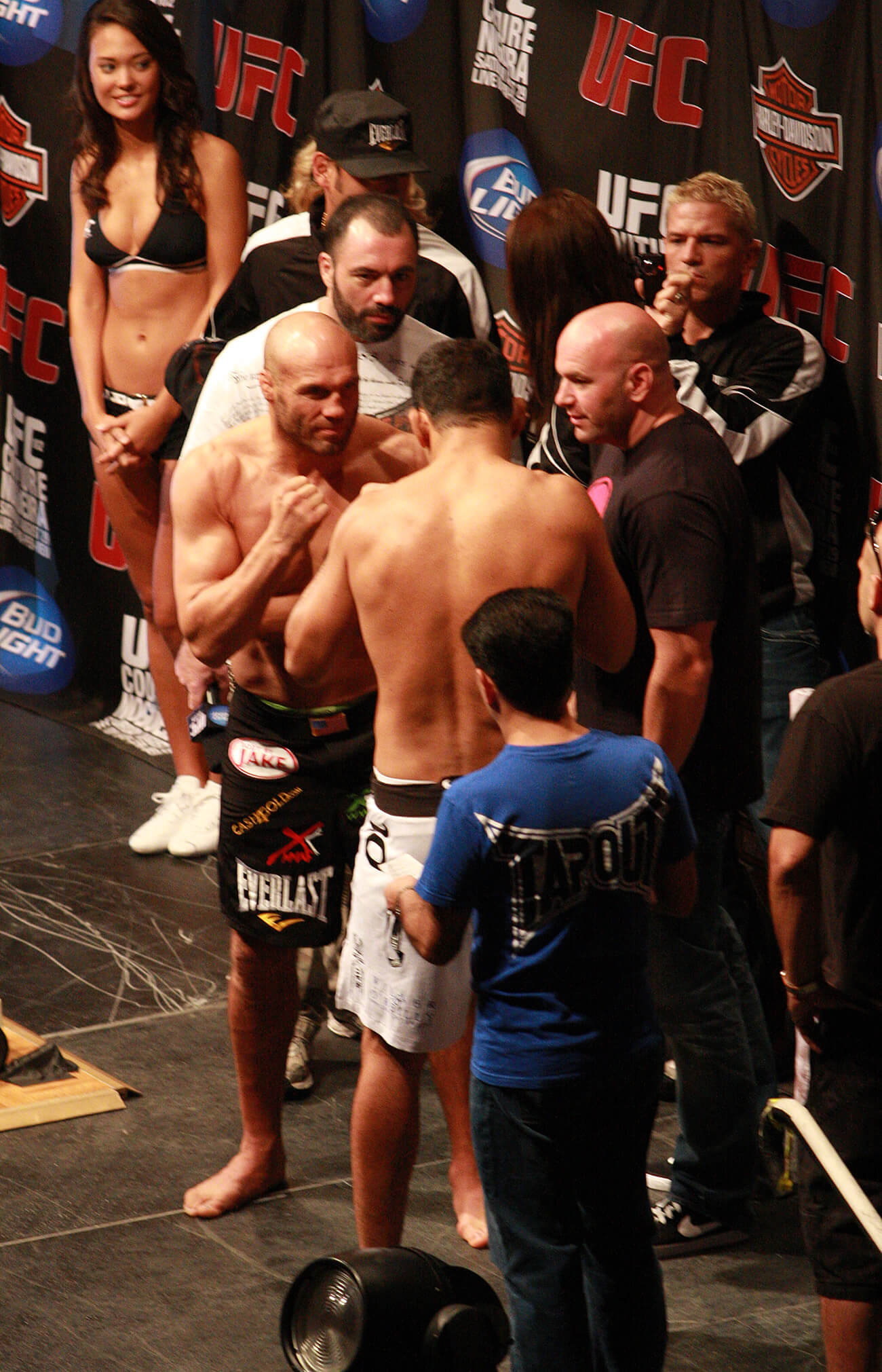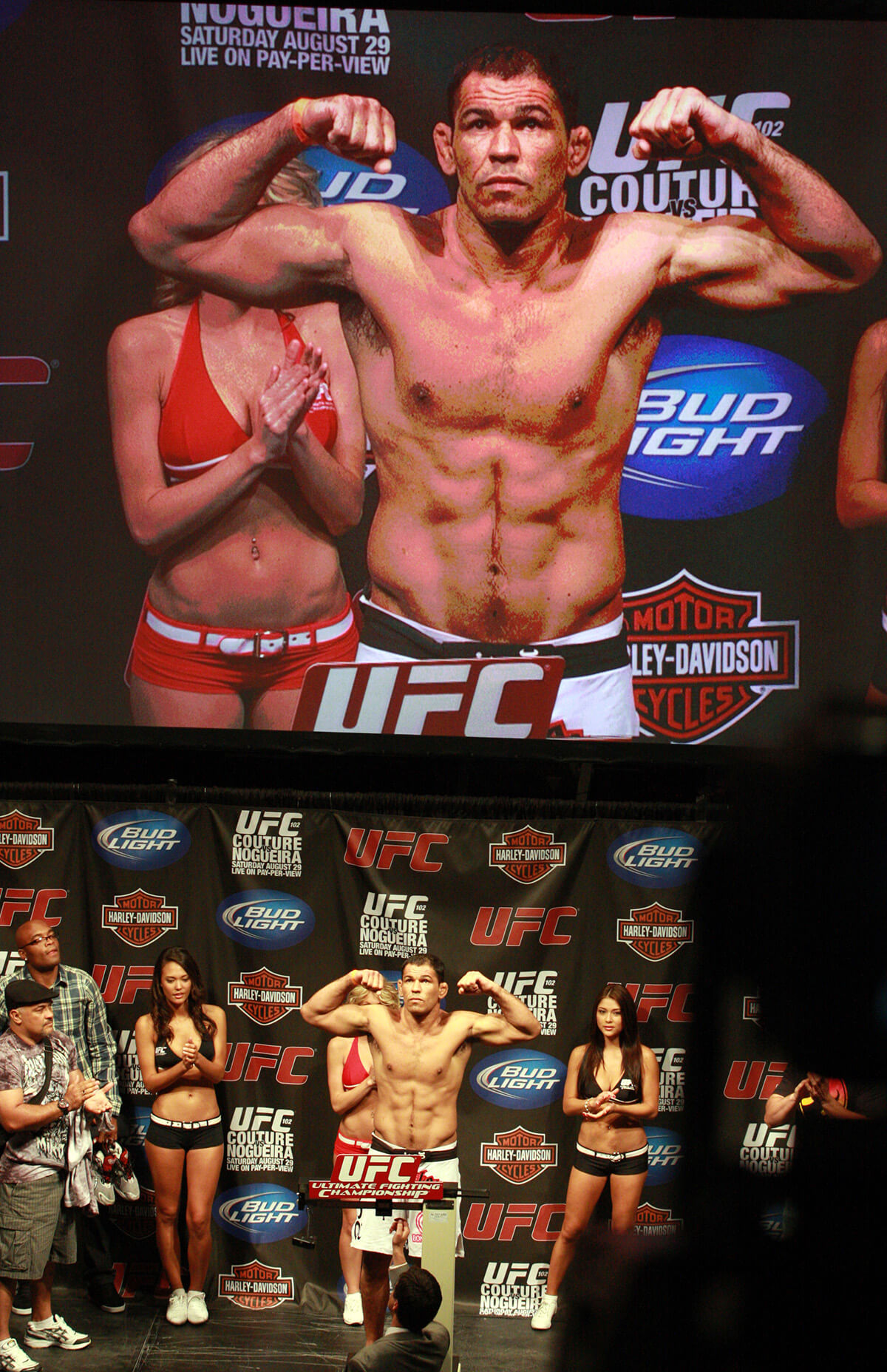 De um lado o brasileiro, único lutador na história a conquistar quatro cinturões peso-pesado de eventos diferentes (WEF, RINGS, PRIDE e UFC), do outro o veterano americano, único a conquistar quatro cinturões do UFC em duas categorias diferentes, lutando em casa diante de uma torcida de 14 mil pessoas. Curiosamente as duas lendas vinham de revezes. Minotauro havia acabado de perder o cinturão interino para Frank Mir, enquanto Couture havia perdido o linear para Brock Lesnar. A vitória poderia definir o próximo oponente de Lesnar.