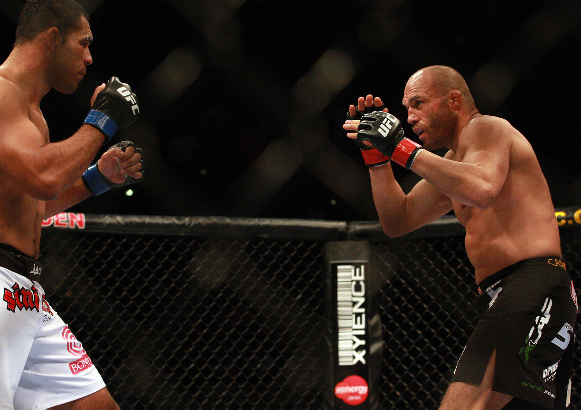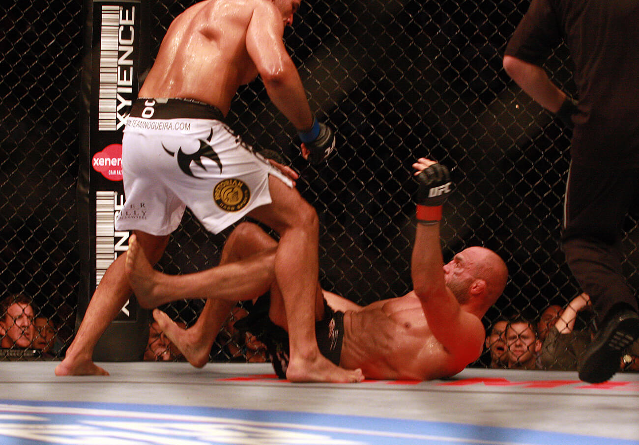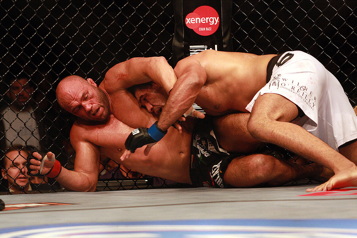 O RANDY É UM DOS MAIORES NOMES DO UFC, E NUNCA TINHA PERDIDO UMA LUTA POR DECISÃO. VOCÊ TINHA ESSE RECEIO, DE TERMINAR A LUTA ANTES E EVITAR A DECISÃO DOS JUÍZES? Tentei finalizar, tentei o katagatame, mata-leão nas costas, tentei triângulo de mão três vezes… Tentei no nocaute, quando conectava os golpes ele mostrou que tem queixo e resistência. Ele é o Randy Couture, não tem nem o que falar. guerreiro, atleta olímpico, valorizou bastante a luta… A gente fez uma das melhores lutas do UFC. Foi um lutão.