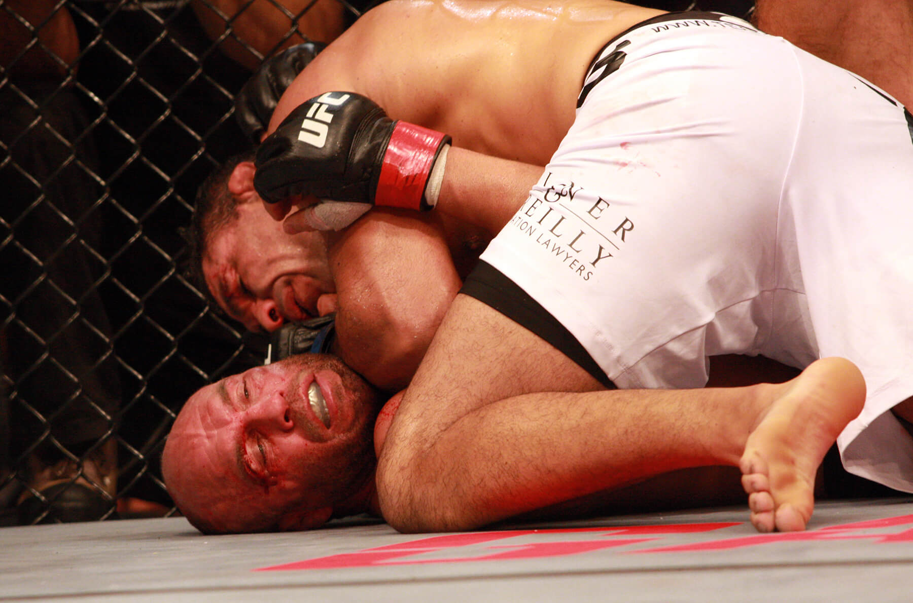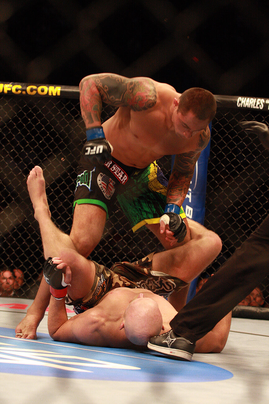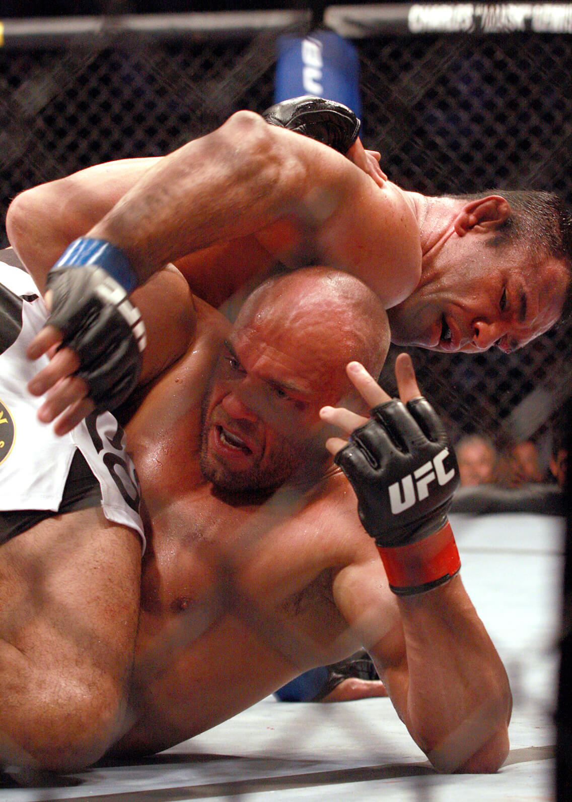 O RANDY É UM DOS MAIORES NOMES DO UFC, E NUNCA TINHA PERDIDO UMA LUTA POR DECISÃO. VOCÊ TINHA ESSE RECEIO, DE TERMINAR A LUTA ANTES E EVITAR A DECISÃO DOS JUÍZES? Tentei finalizar, tentei o katagatame, mata-leão nas costas, tentei triângulo de mão três vezes… Tentei no nocaute, quando conectava os golpes ele mostrou que tem queixo e resistência. Ele é o Randy Couture, não tem nem o que falar. guerreiro, atleta olímpico, valorizou bastante a luta… A gente fez uma das melhores lutas do UFC. Foi um lutão.