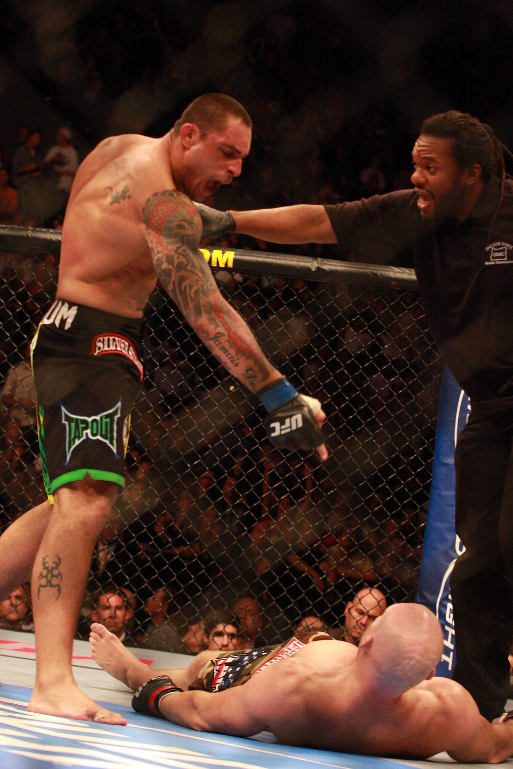 COMO FOI VENCER O COUTURE EM CASA E COM TODA ESTA PRESSÃO ? Foi um lutão ! e o Couture só valorizou a minha vitória. Ele escapou de todas as minha tentativas de finalização e veio pra cima o tempo inteiro. Ele tentou fazer o jogo dele na grade, mas treinei muito com o Mark Muñoz e outros grandes wrestlers que me deixaram bem na greco romana.