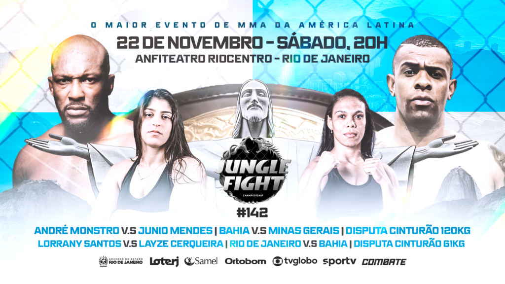 O maior evento de MMA da América Latina está de volta ao Rio de Janeiro. O Jungle Fight 142 acontece no dia 22 de novembro, no Riocentro, na Barra Olímpica. A última edição na capital fluminense foi em junho de 2023. A TV Globo, o Sportv e o canal Combate transmitem ao vivo.