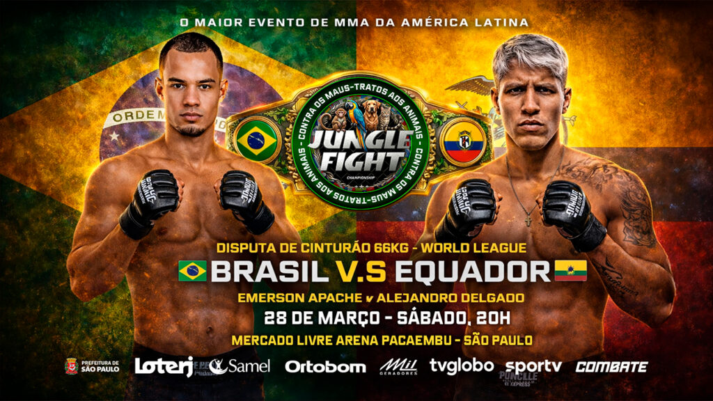 A edição internacional será marcada pela disputa do cinturão inaugural peso-pena. No combate principal, o paulista Emerson Apache enfrenta o equatoriano Alejandro Delgado em um confronto entre Brasil e Equador. Apache chega embalado por cinco vitórias consecutivas, quatro pelo Jungle Fight, enquanto Delgado mantém um cartel invicto, com seis triunfos em seis lutas como profissional de MMA.