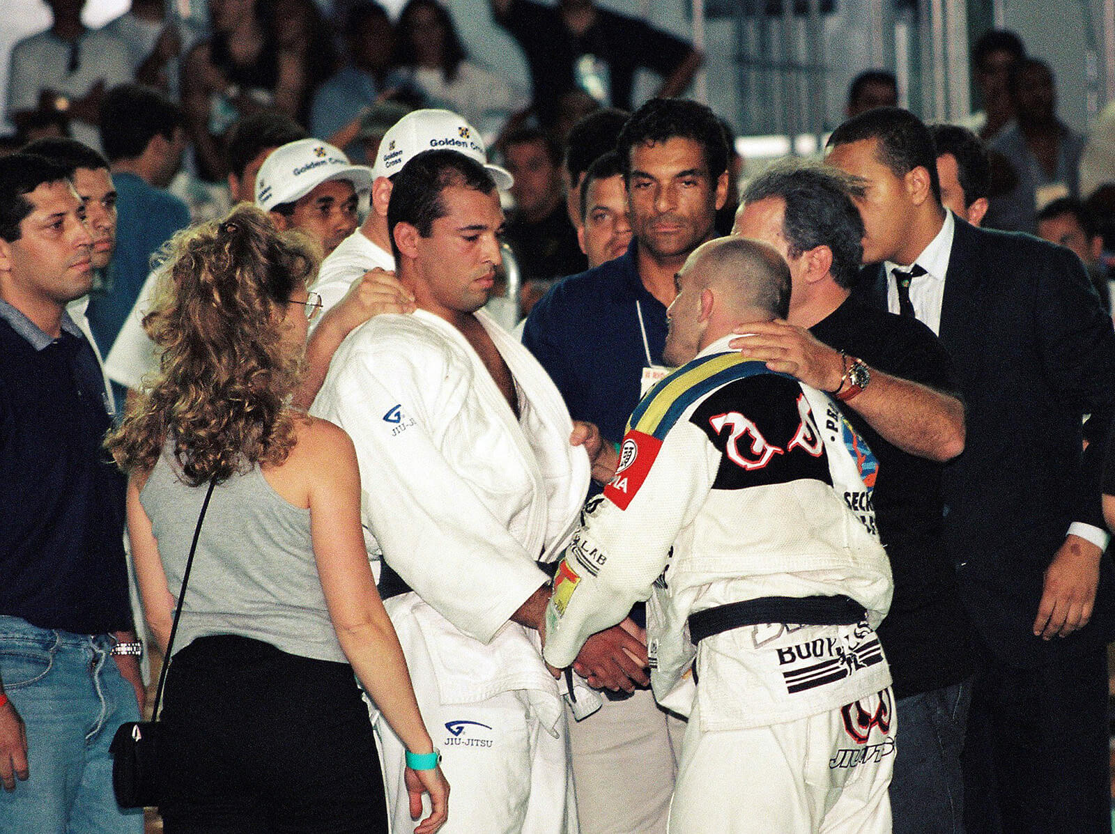 - o arbitro Hélio Vigio não percebe que Royce apagou e seus irmãos Rorion e Relson invadem o dojo para acudir o irmão