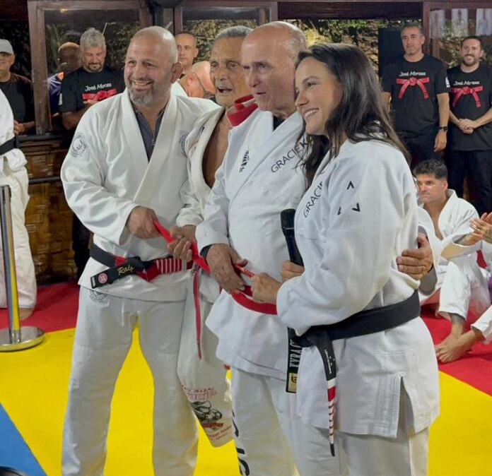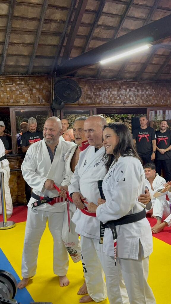 Conhecido no mundo das artes marciais como um dos maiores apoiadores da luta nos tempos em que foi secretário de esporte do Rio de Janeiro no fim dos anos 90, José Moraes recebeu na última quinta, aos 79 anos, sua faixa vermelha de Jiu-Jitsu das mãos de Relson Gracie, filho de seu primeiro mestre, Hélio Gracie.